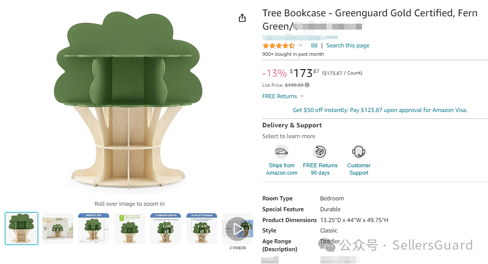 疑似与该外观专利高度相似的亚马逊产品链接截图,售价173美金,已有88个留评: