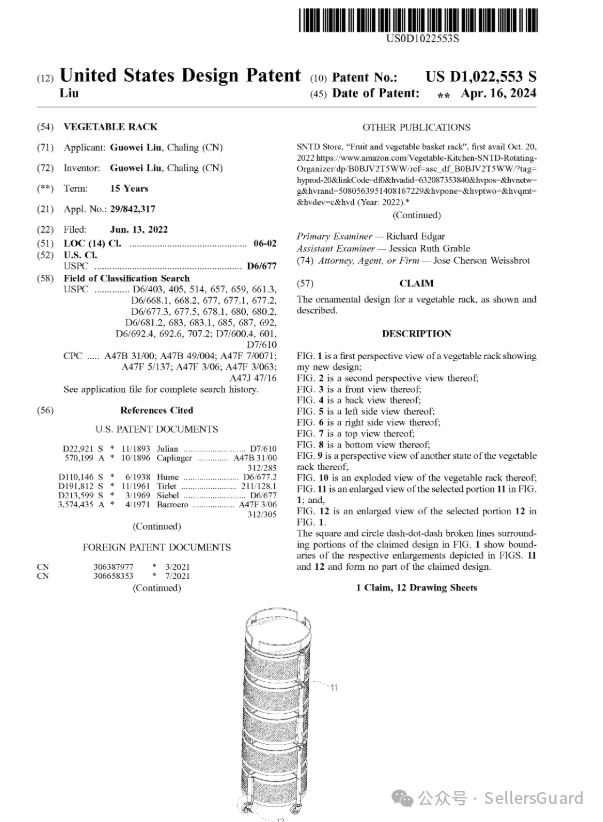 根据美国专利商标局发布的最新数据,我们分享五款在亚马逊上比较热销,并刚刚取得得外观设计专利的产品。售卖高度相似的产品可能面临着较高的侵权投诉和临时禁令(TRO)维权风险。各位卖家需要密切关注这些新专利,并采取适当措施以规避潜在的侵权风险。